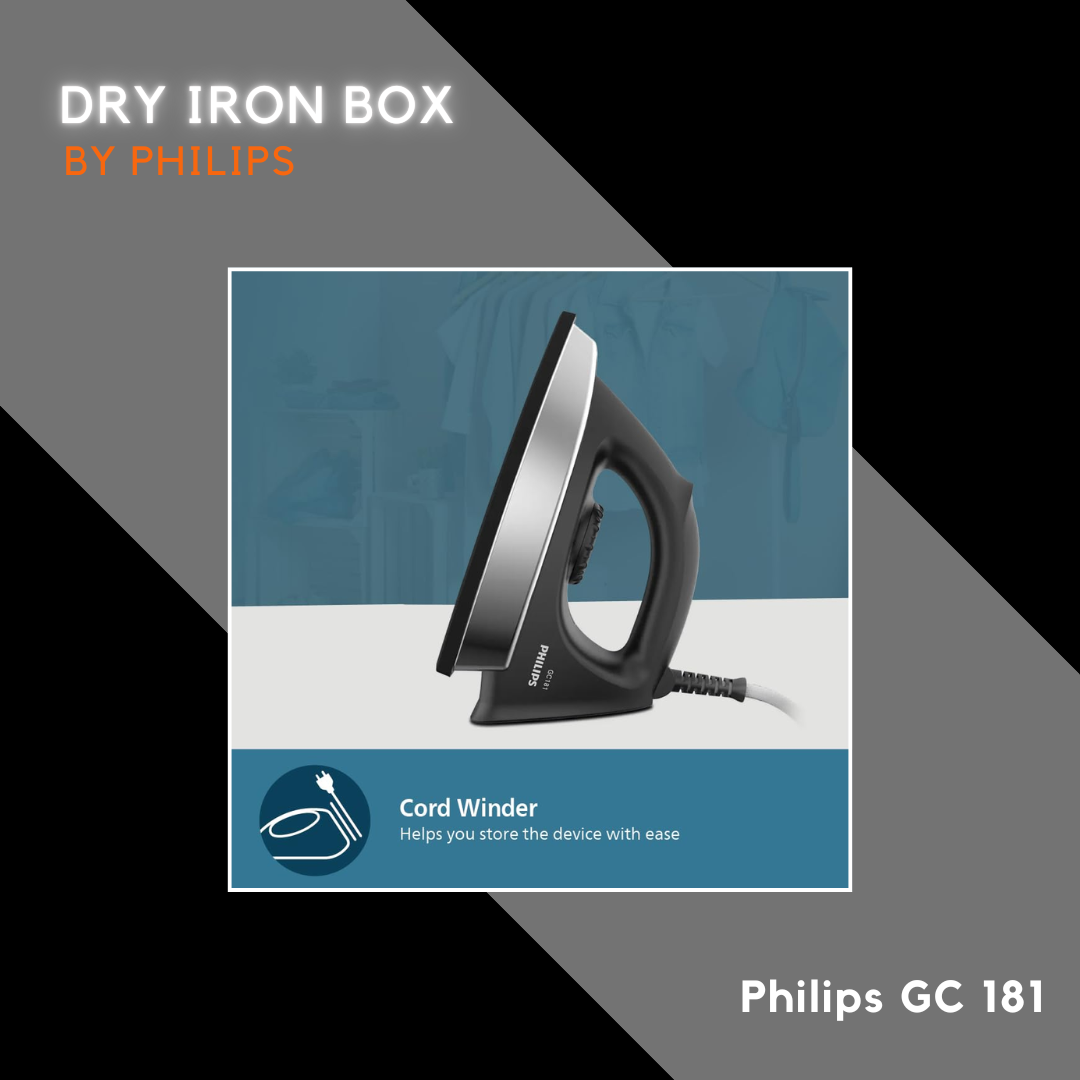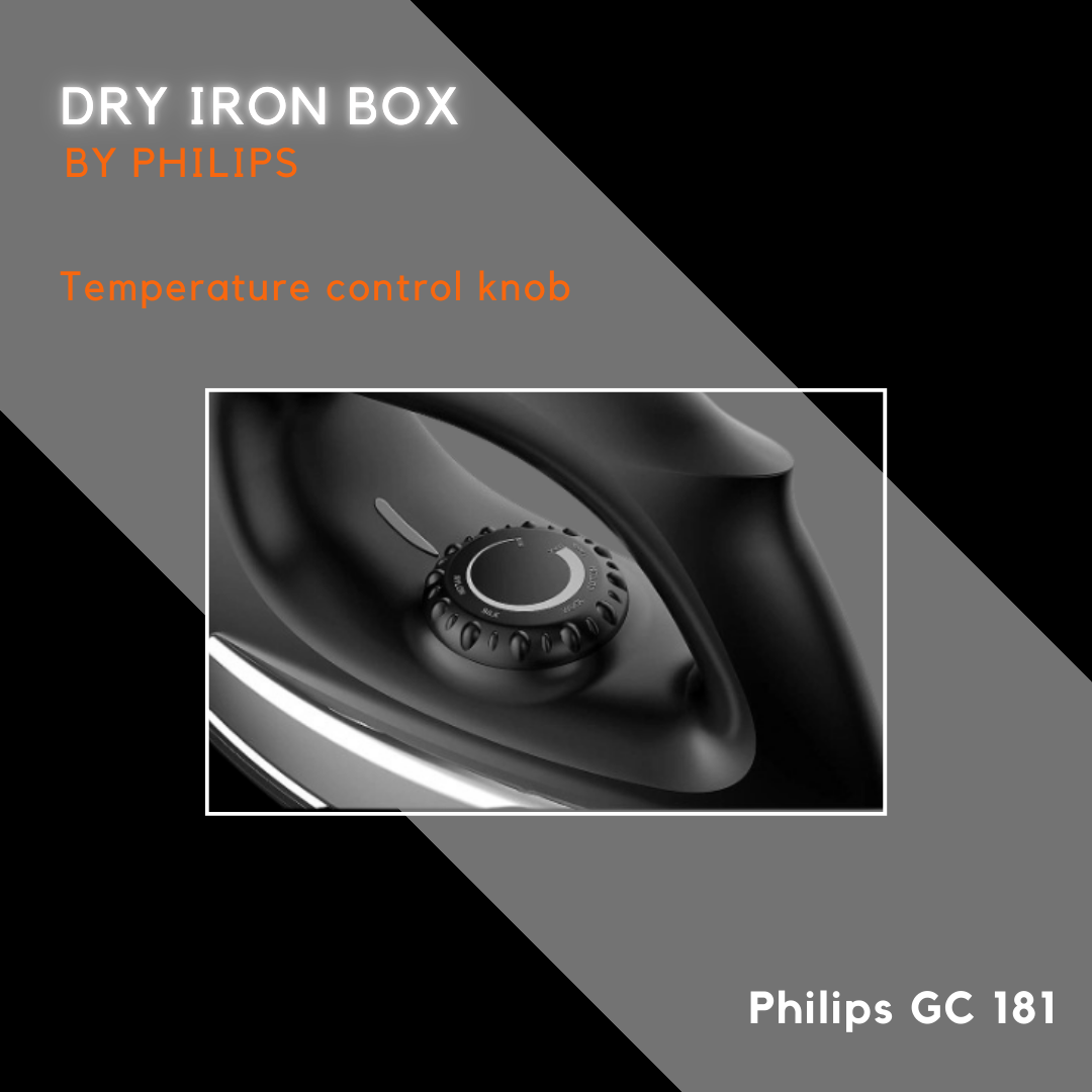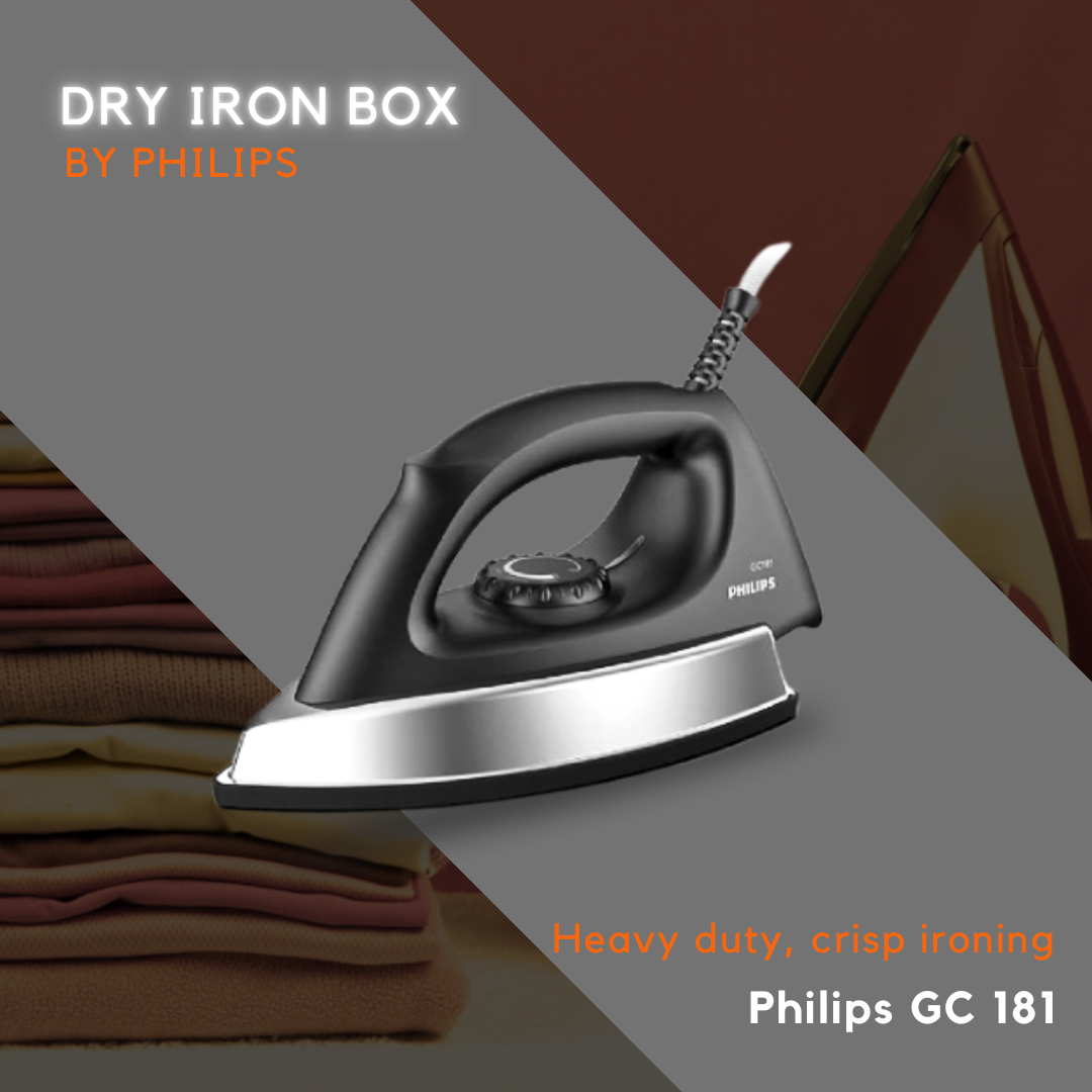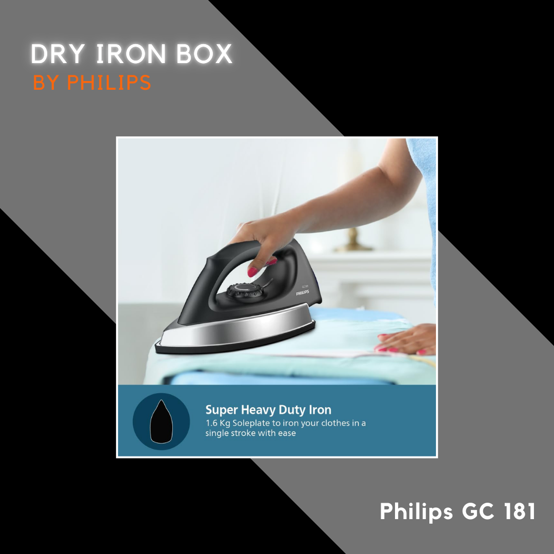 Say goodbye to stubborn wrinkles with the Philips GC 181 Heavy Weight Iron Box. The black non-stick soleplate glides effortlessly over all fabrics, and the heavy soleplate tackles creases with ease. With a powerful 1000-watt heat-up and a convenient temperature ready light, ironing is quick and efficient.